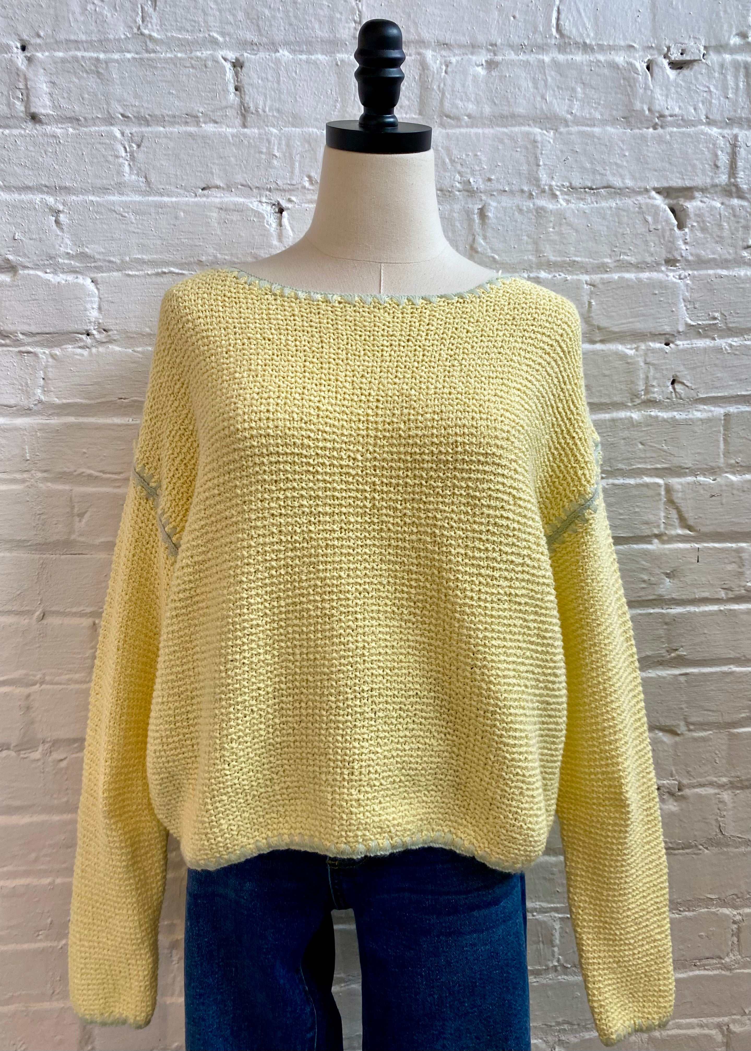 This lightweight viscose sweater in sunny yellow is your new casual favorite. Stitch detailing gives it just enough character without trying too hard. Perfect for those warm summer days when you want something breezy but not boring. Pair it with your go-to jeans, shorts, or linen pants. Easy, comfortable, and ready for anything.