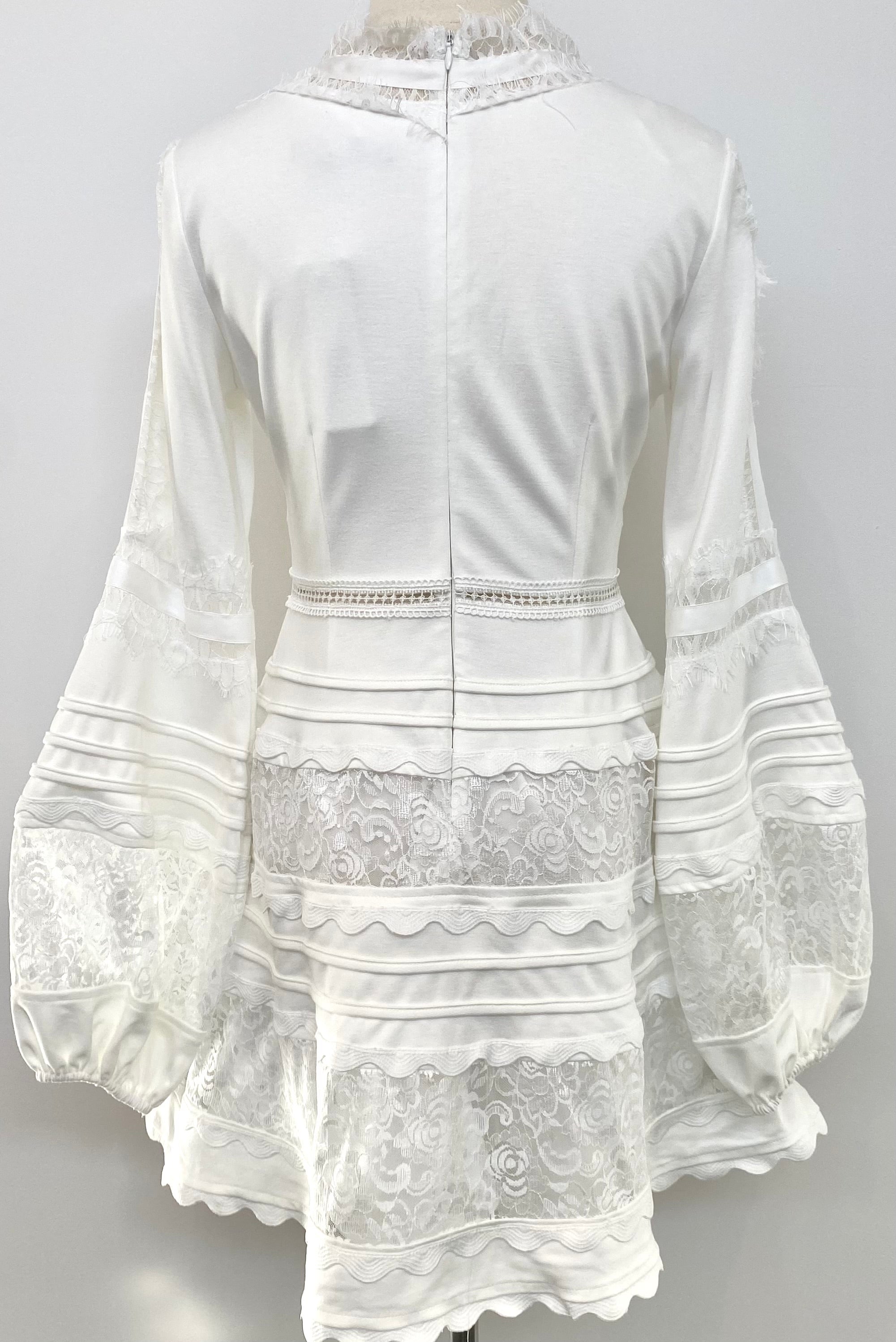 White Detailed Lace Trim Dress