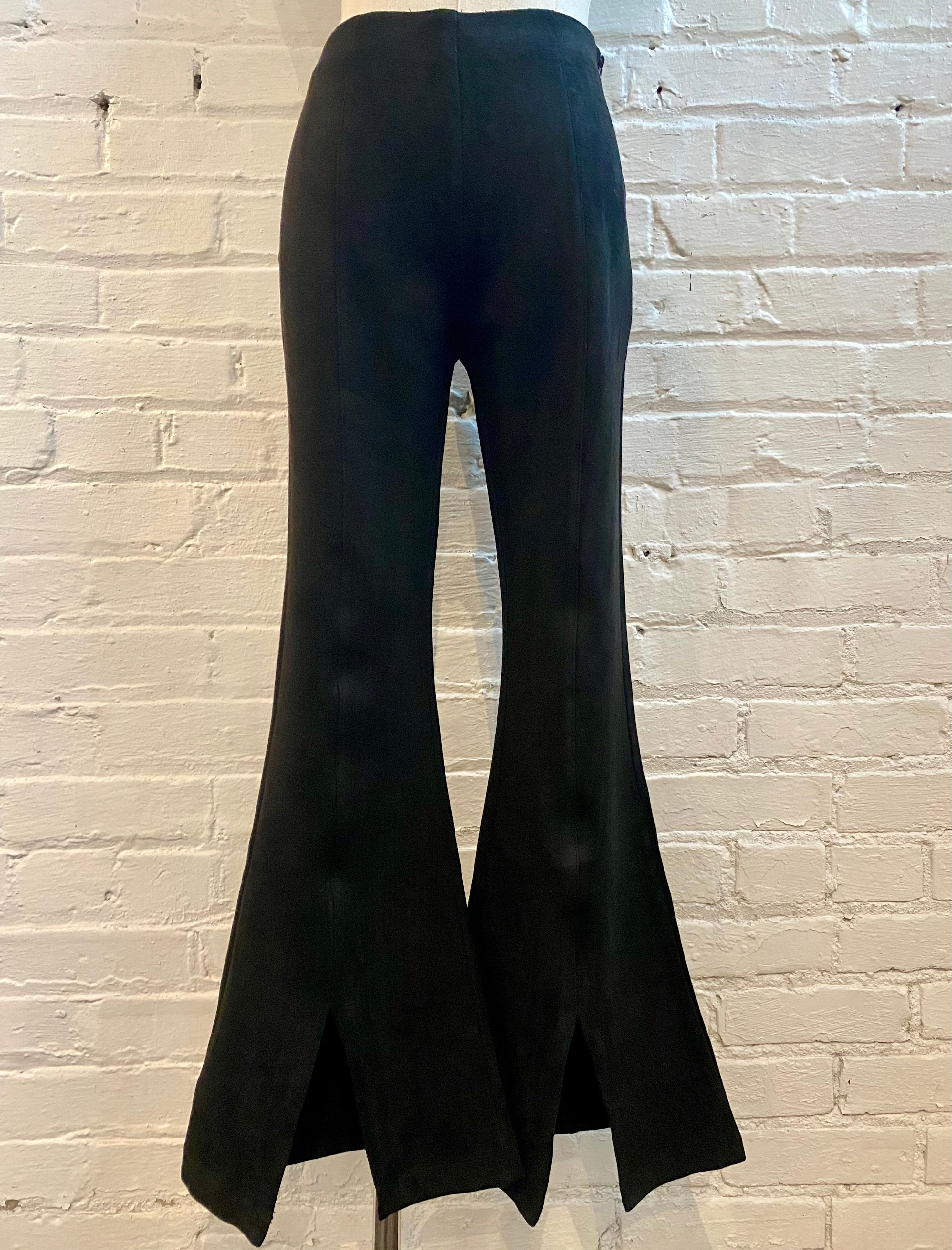 Meet your new go-to pant. These front slit flares are made from buttery-soft faux suede that feels as good as it looks. Pull them on, forget about zippers, and let the subtle flare do the talking. Front slit detail adds just enough edge to keep things interesting, while the cozy fabric keeps comfort at the top of the priority list. Classic meets playful—exactly what your wardrobe's been waiting for.
