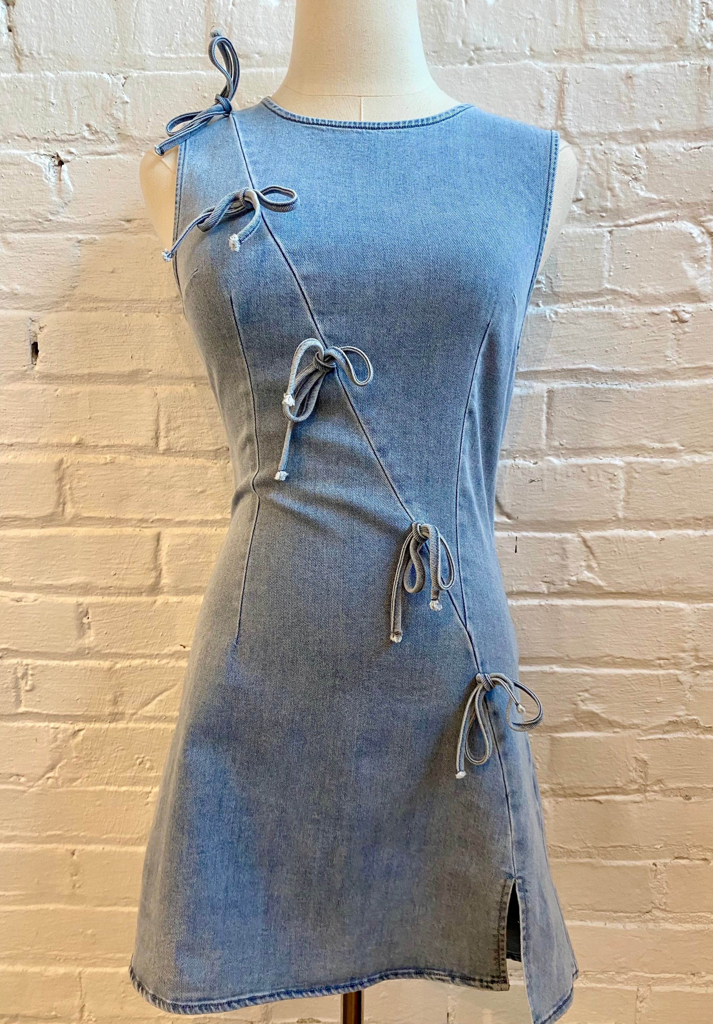 Pick your perfect match! The Diagonal Bow Dress comes in two distinct color and fabric combinations to suit your style. Choose the cheerful peach polka dot cotton for a sweet, timeless aesthetic, or go for the light-wash denim option for a relaxed, modern edge. Both feature that signature diagonal side bow tie for instant charm. Find your favorite and make it yours!