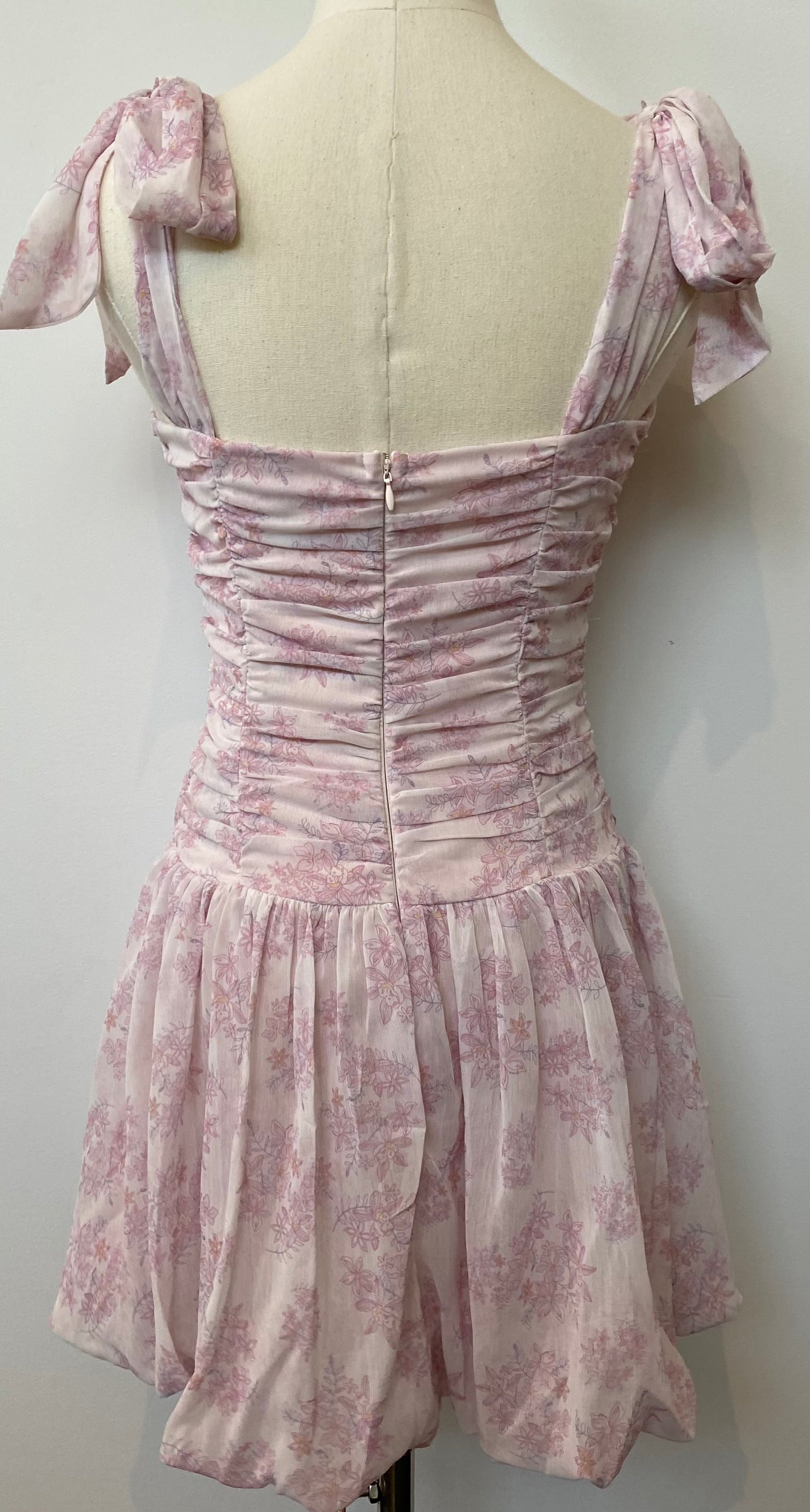 This playful tie-shoulder dress features a flattering ruched bodice adorned with delicate pink florals. Perfect for daytime parties or vacation adventures, it effortlessly transitions from casual to elegant. Slip into this versatile piece and embrace your carefree, stylish side wherever the day takes you!