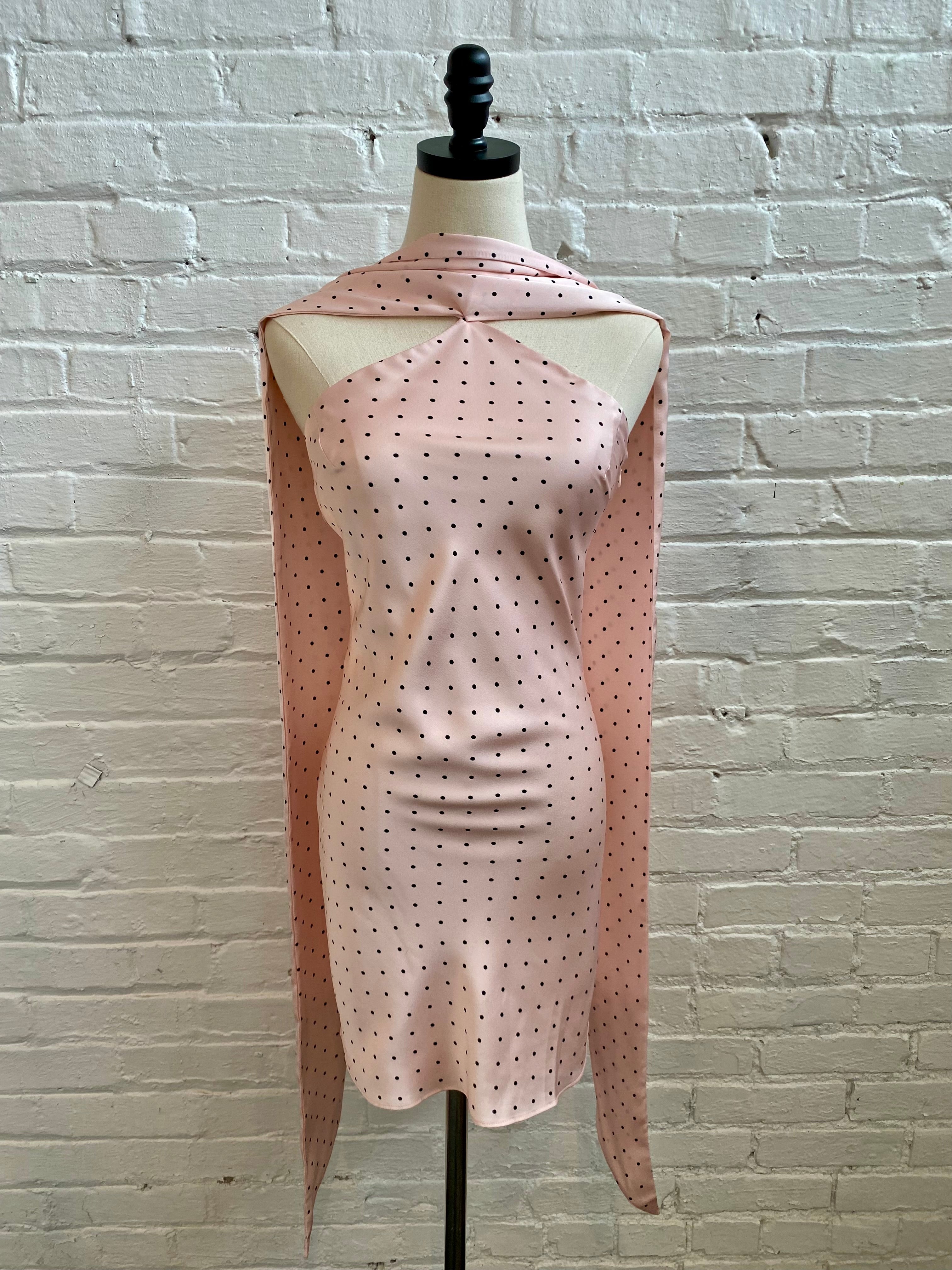 Effortless elegance meets playful style with this polka dot slip dress. Crafted from a silky fabric, the halter neckline flatters while the lightweight fabric drapes beautifully for all-day comfort. Perfect for seasonal transitions, this versatile style stands alone for evening occasions. The timeless polka dot pattern adds a current charm to any wardrobe, making it an essential piece for fashion-forward dressing.