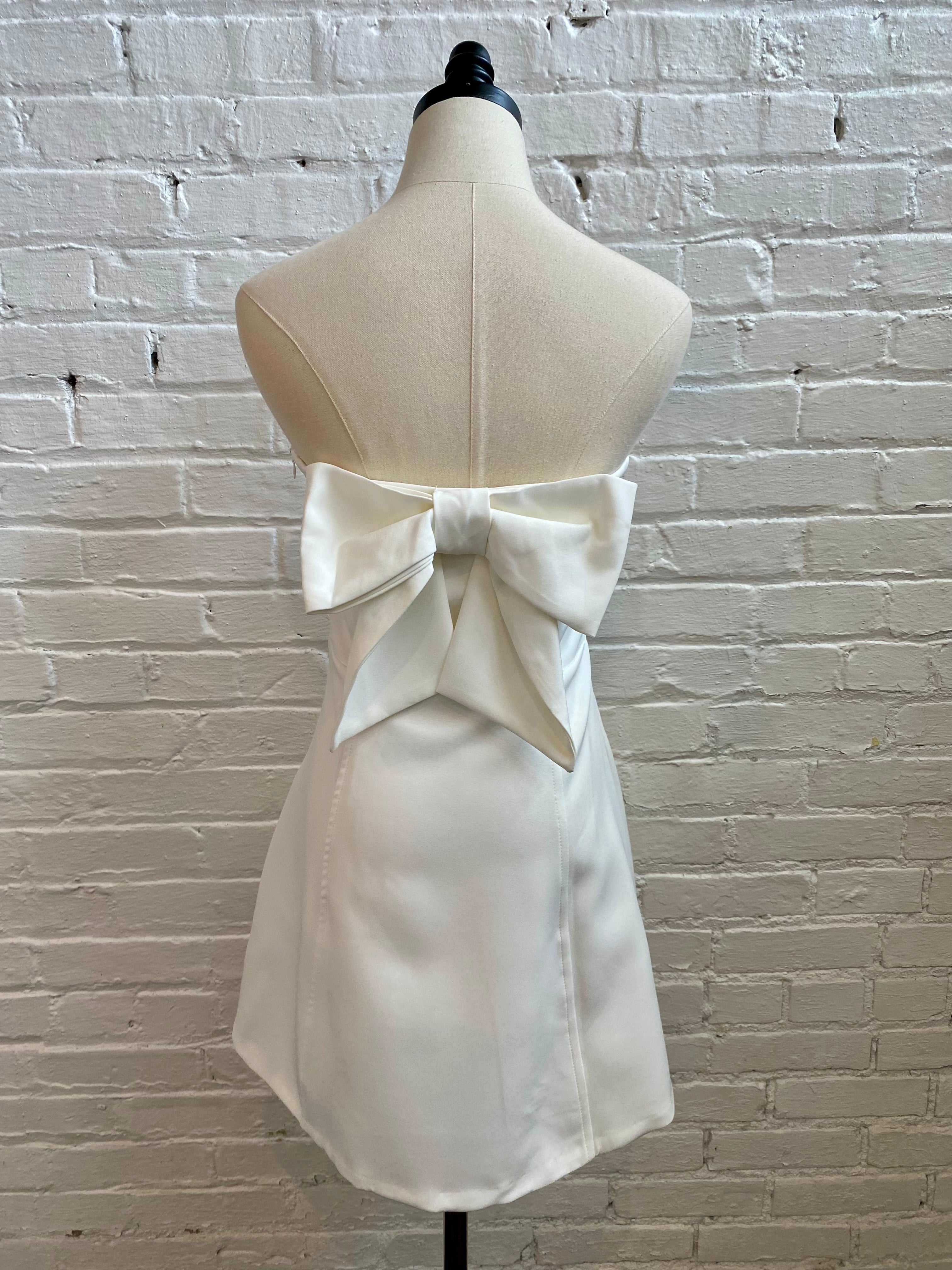Strapless Back Tie Bow White Dress