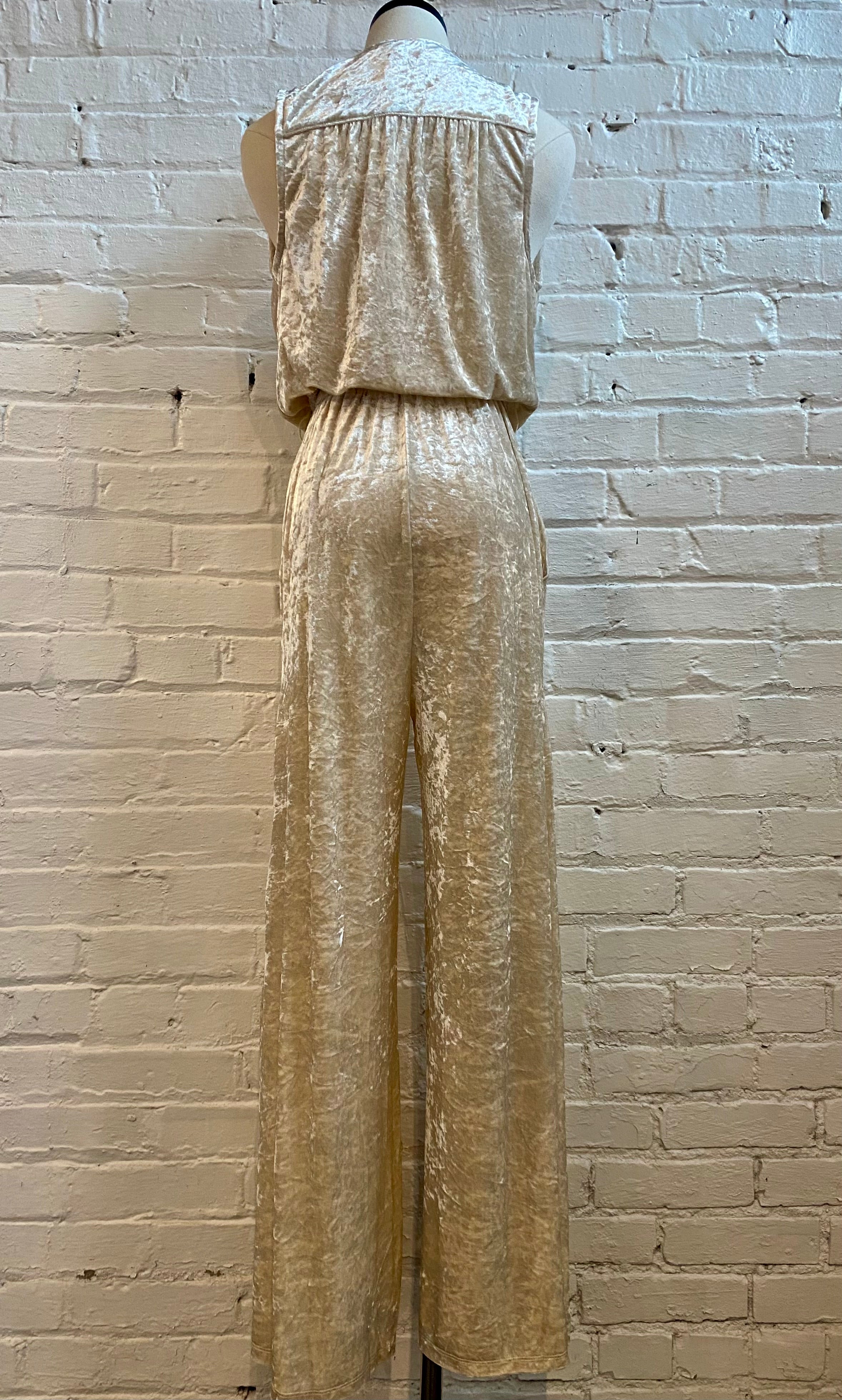 Slip into effortless elegance with this sleeveless velvet jumpsuit in luxe ivory. The soft, sumptuous fabric drapes beautifully while the streamlined silhouette flatters every frame. Layer it over a fitted turtleneck for cozy sophistication, or pair with a statement faux fur stole for show-stopping holiday glamour. Perfect for everything from festive gatherings to chic evening affairs—one piece, infinite style possibilities.