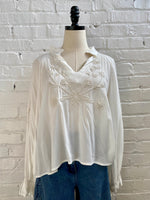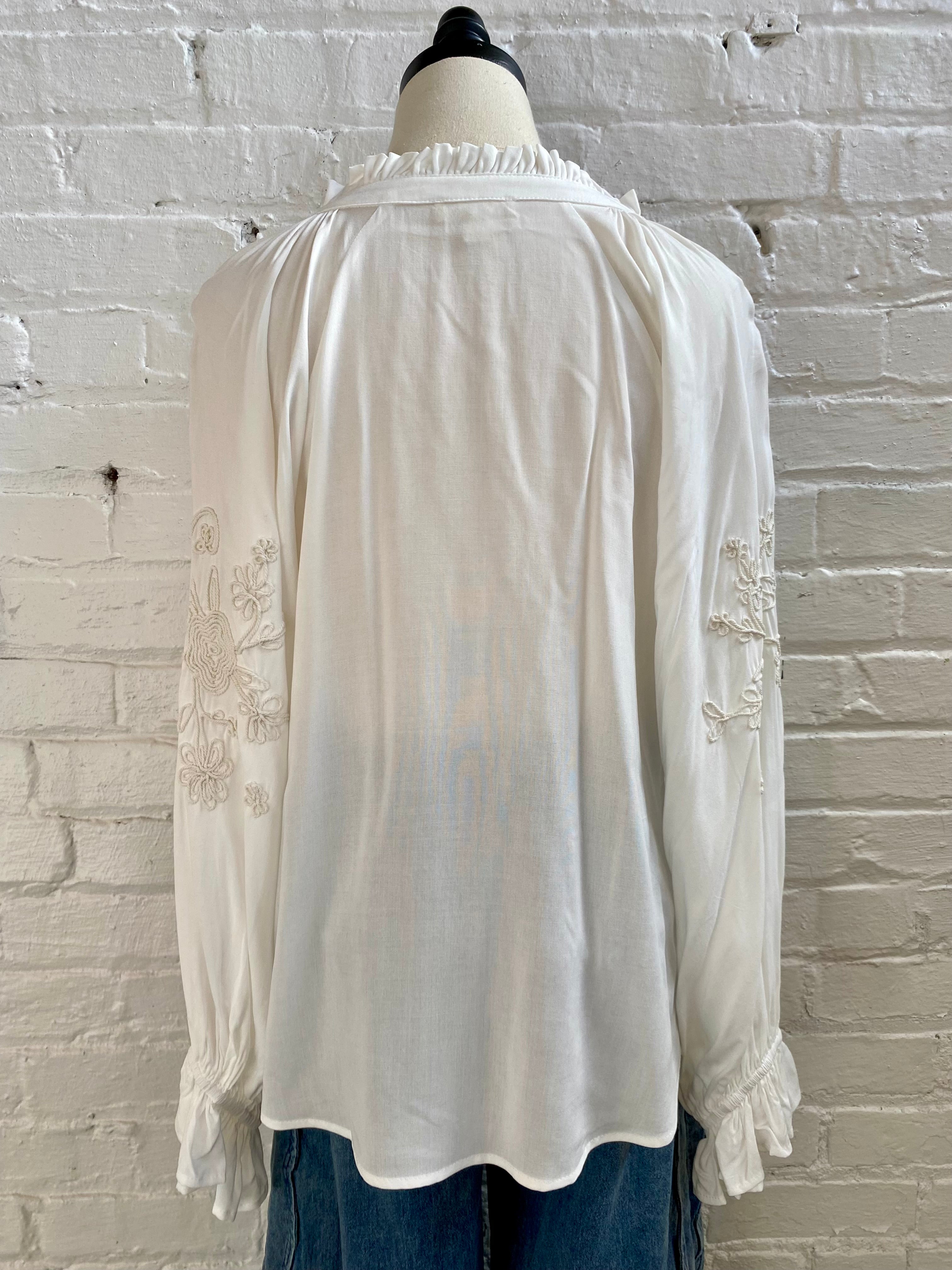 Boho-Chic Embroidered White Peasant Blouse