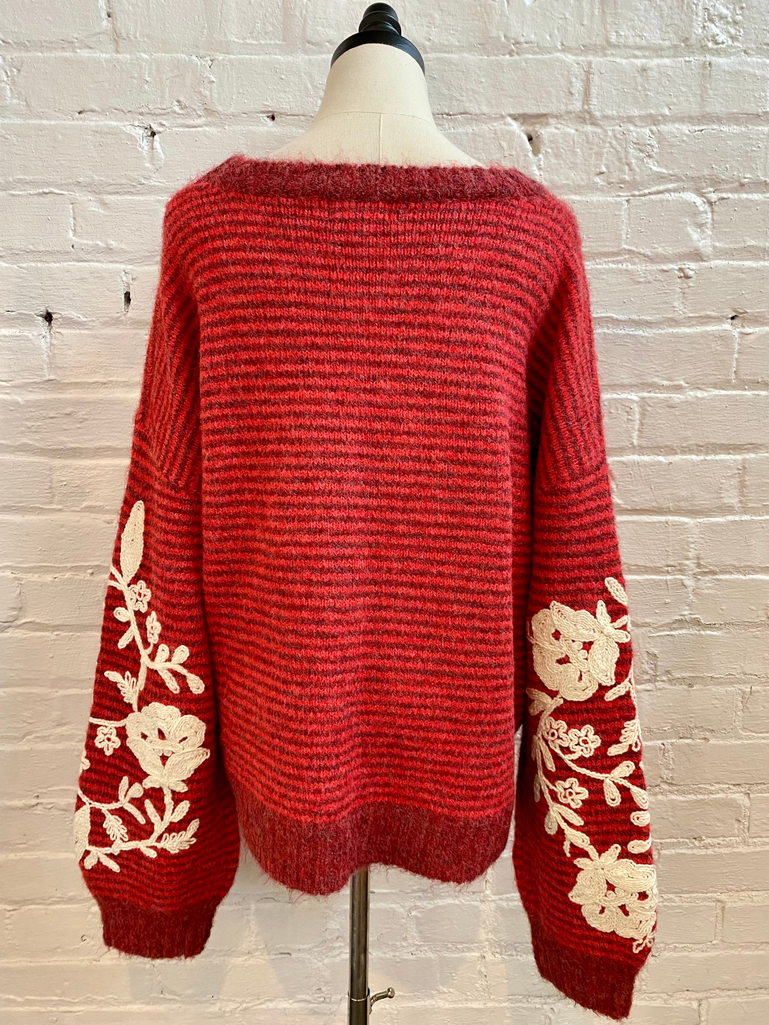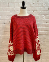 Floral Embroidered Sleeve Sweater