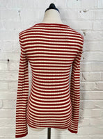 Mix, match, and celebrate the season in this vibrant ribbed striped long sleeve top! Red and ivory stripes dance across a textured fabric that's made for layering magic. Throw it under a cozy sweater, pair it with your favorite cardigan, or wear it solo for instant holiday vibes. The casual, relaxed fit keeps things comfortable while the festive color combo does all the talking. Perfect for creating endless outfit combinations that feel both merry and effortlessly put-together.