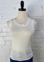 Throw on this Round Neck Lace Tank whenever you need that perfect layer of femininity without the bulk. The delicate lace detailing adds a touch of romance to any outfit, while the lightweight construction keeps you comfortable all day long. Whether you're layering under a blazer for a polished look or wearing it solo for a breezy vibe, this tank is your go-to piece for effortless style.