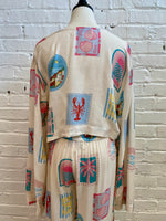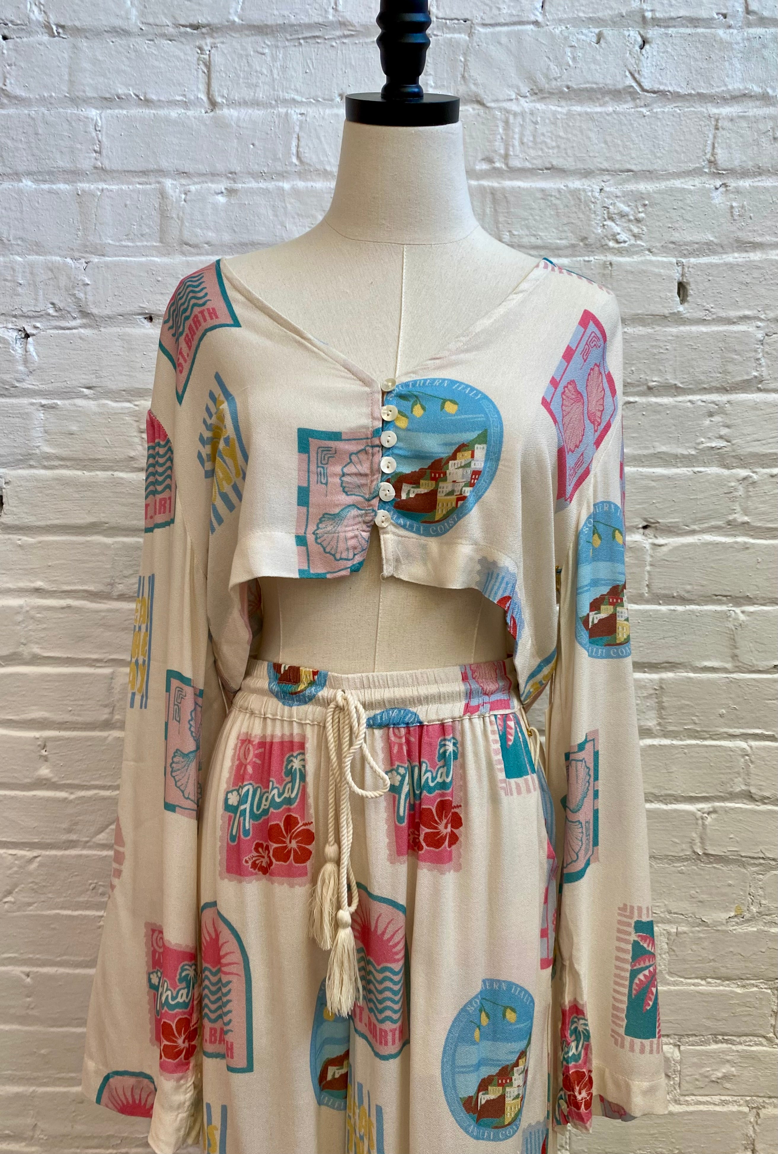 Vintage Havana vibes meet modern ease in this scenic summer blouse. Cropped silhouette pairs effortlessly with matching slacks or shorts for laid-back style that works season after season. Long sleeves offer subtle coverage without the bulk. Perfect for warm-weather adventures, casual outings, or relaxed weekend wear.
