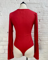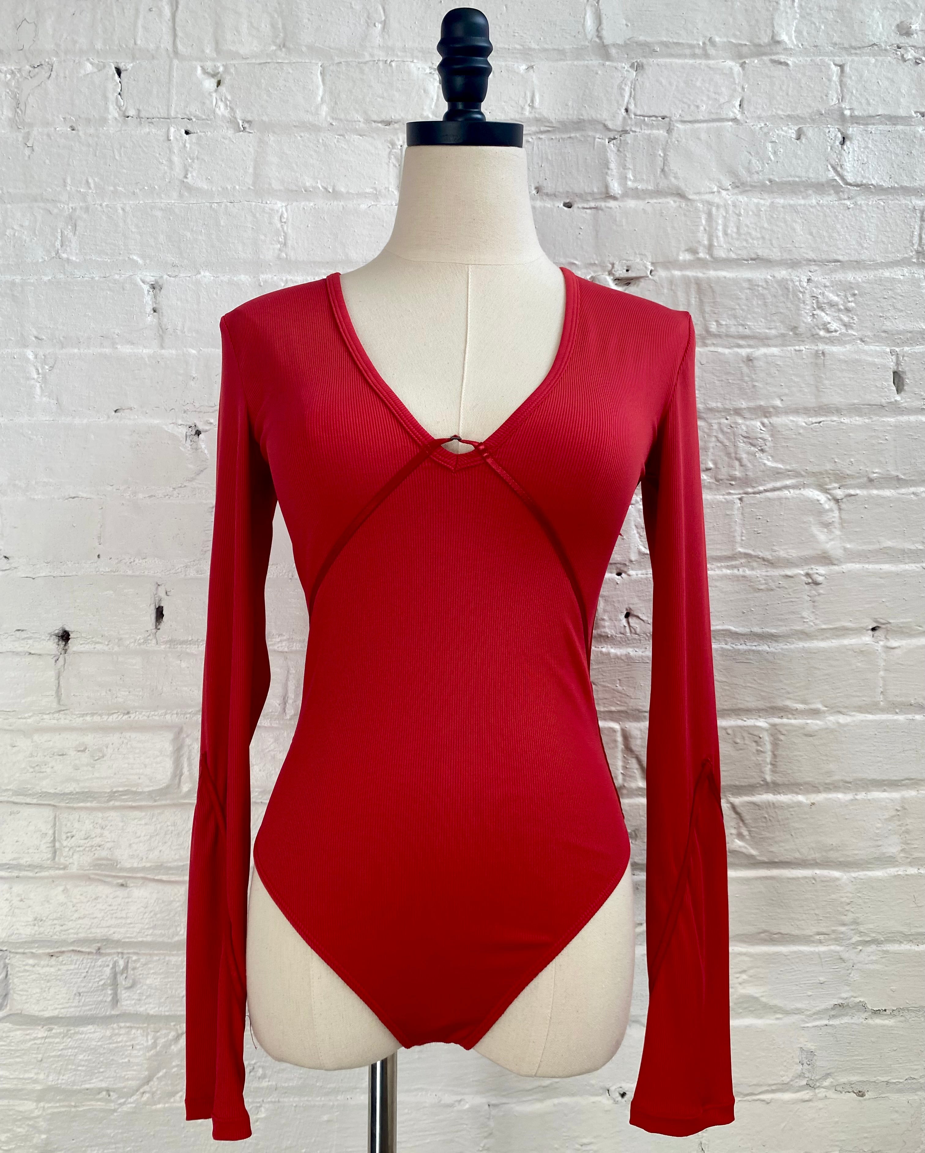 Meet your new wardrobe essential—the Victoria Plunge Bodysuit by Free People n striking red! This must-have piece features a flattering V-neckline that commands attention while the bodysuit silhouette keeps everything perfectly in place. Whether you're dressing it up for a night out or pairing it with your favorite jeans for casual chic, this versatile red beauty works overtime in your closet. Effortless, elegant, and undeniably fun—it's the kind of piece that makes getting dressed feel like a breeze.