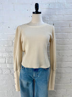 Waffle Knit Cuff Puff Sleeve Top