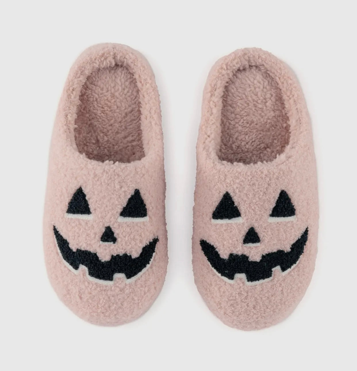 Slip into the perfect Halloween accessory with Jack O'lantern Slippers! These fuzzy and fun slippers add a playful touch to your outfit or cozy comfy nigh in. The pink color adds a pop of color, perfect for any Halloween look!
