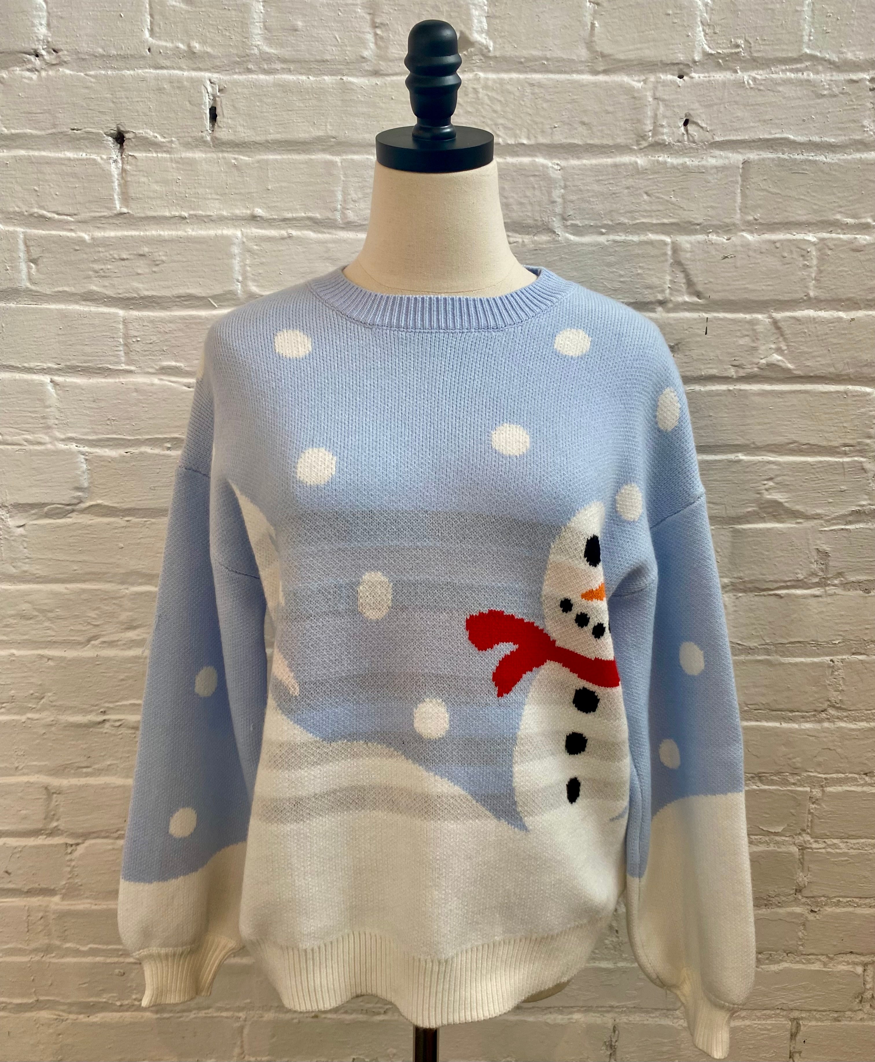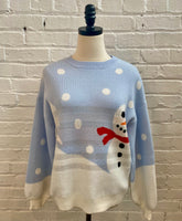 Stay cozy and cute on chilly days with the Snow Day Sweater. This adorable sweater features a snowman design with a frosty red scarf and snowflake accents. Perfect for adding a touch of whimsy to your winter wardrobe.