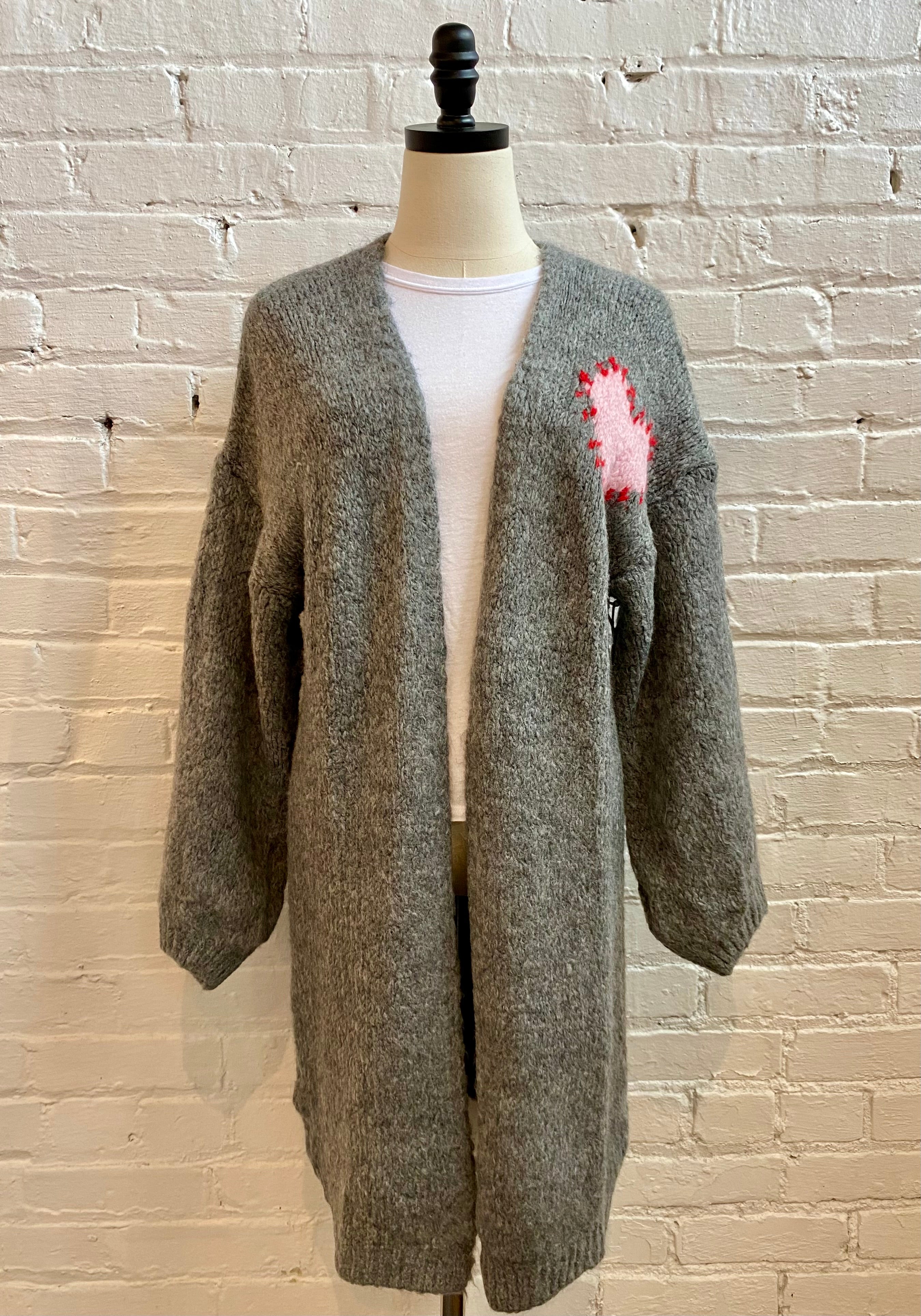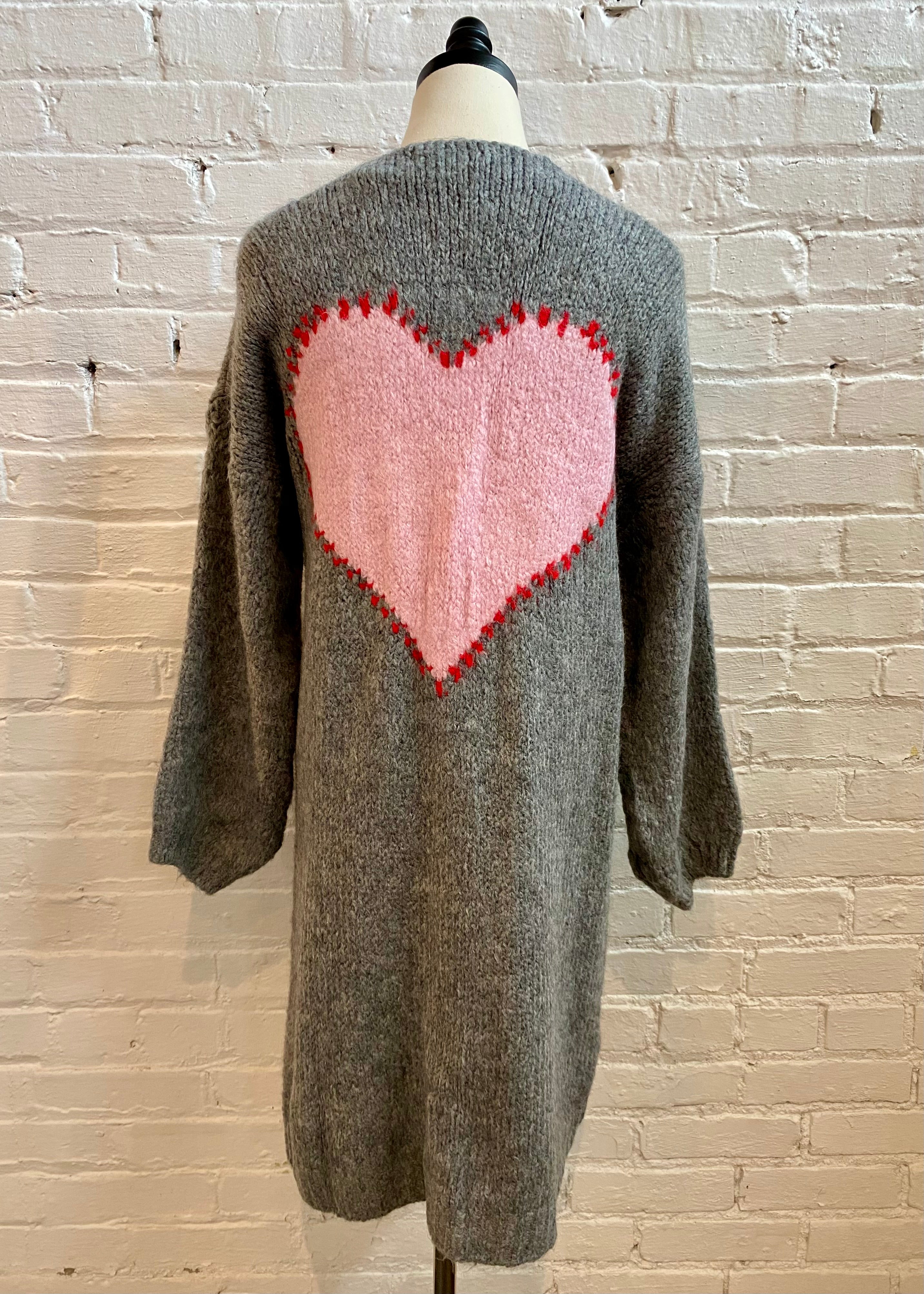 Stay cozy and stylish with this Dark Grey Heart Back Cardigan from Vintage Havana. Featuring a charming heart motif on both the back and front, this long cardigan blends vintage vibes with a playful twist. Perfect for layering on chilly days, it adds a cute, trendy touch to any outfit. Embrace comfort and flirt with fashion effortlessly in this must-have piece. XOXO!