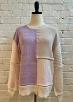 Skip the boring basics. This lilac color-block sweater mixes textures and tones for a look that's anything but ordinary. Crafted from lightweight, breathable fabric, it's your go-to layer for every season—comfortable enough for all-day wear, stylish enough to turn heads. A true wardrobe essential for those who dare to stand out.