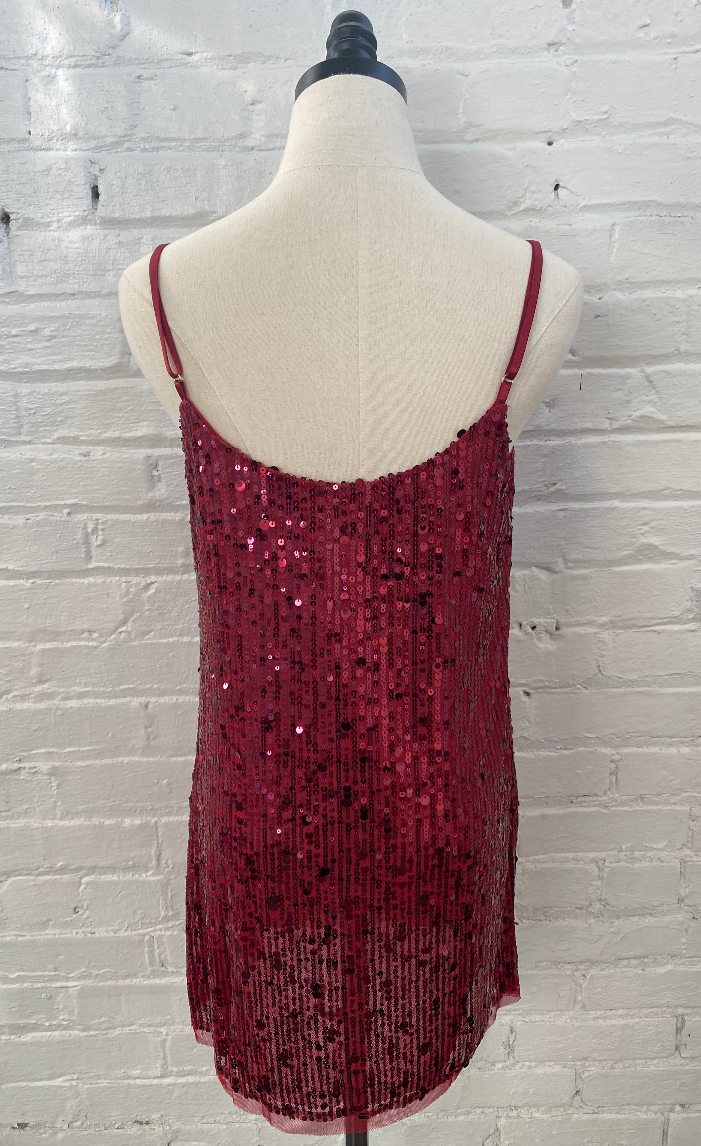 Turn heads at your next party with the Midnight Kiss Mini Slip Dress from Free People. This playful cocktail dress sparkles with sequins available in chic black or rich burgundy, perfect for dancing under the lights. Its flattering mini slip silhouette blends effortless style with a touch of glam, making every moment feel like a celebration.