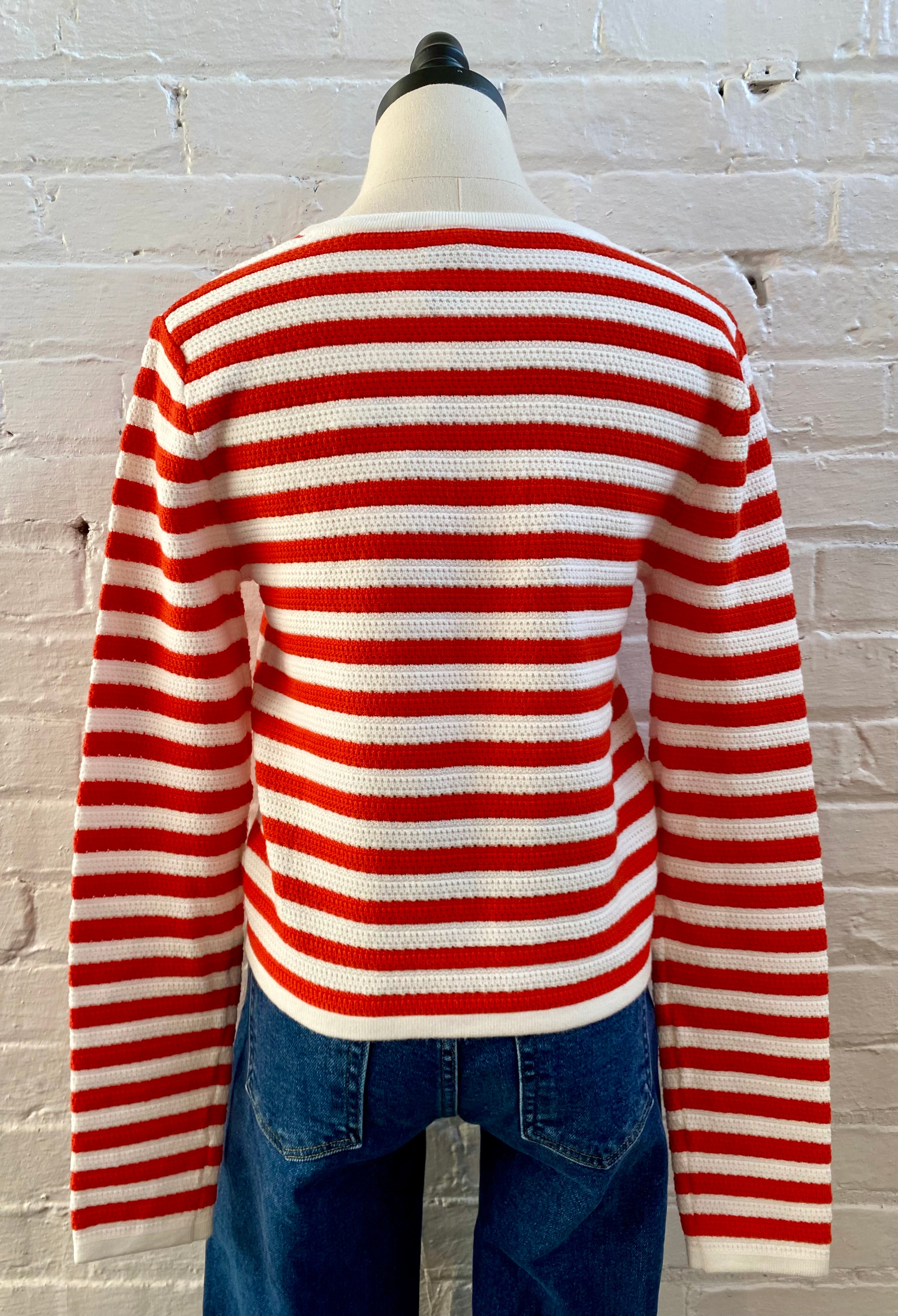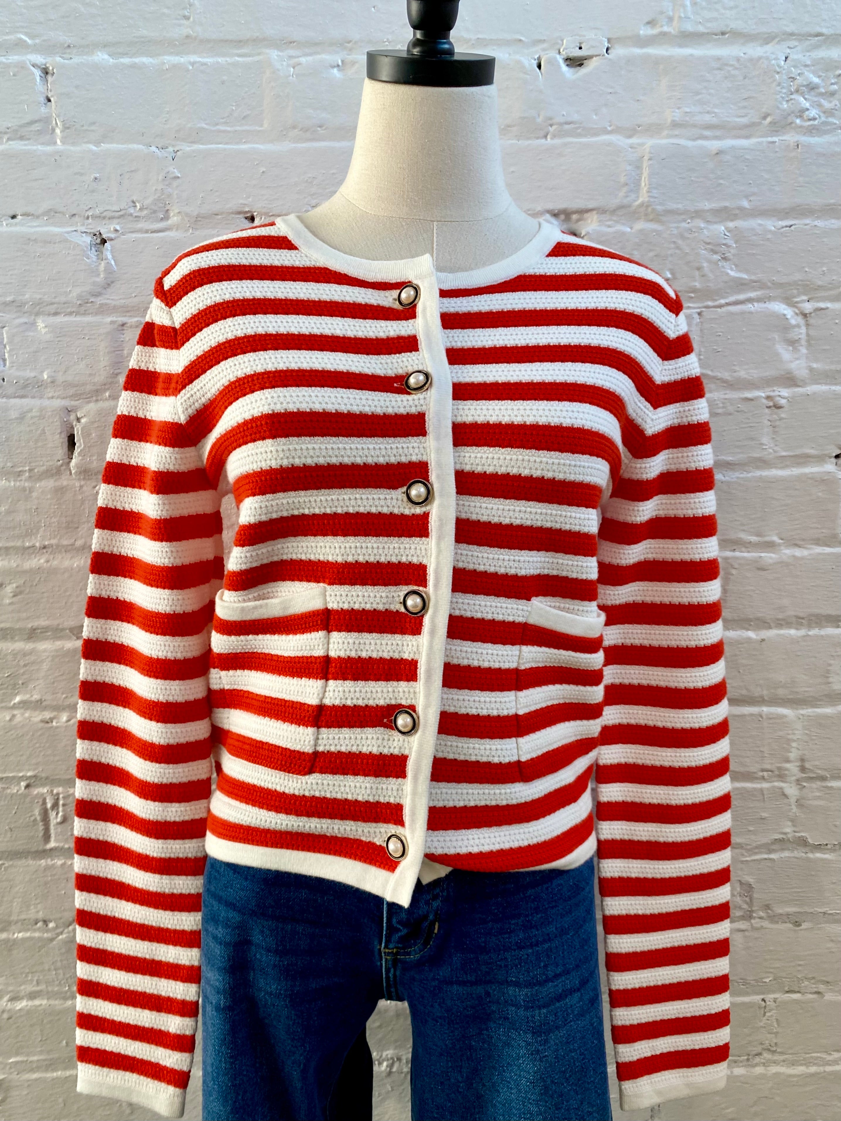 Stripes never looked so good! This Pearl Buttons Sweater is your ticket to effortless style with a playful twist. The fabric details creates visual depth, while classic stripes keep things timelessly chic. Pearl button embellishments elevate the whole vibe—it's those little touches that transform a basic sweater into something special.  Style it your way and watch the compliments roll in.