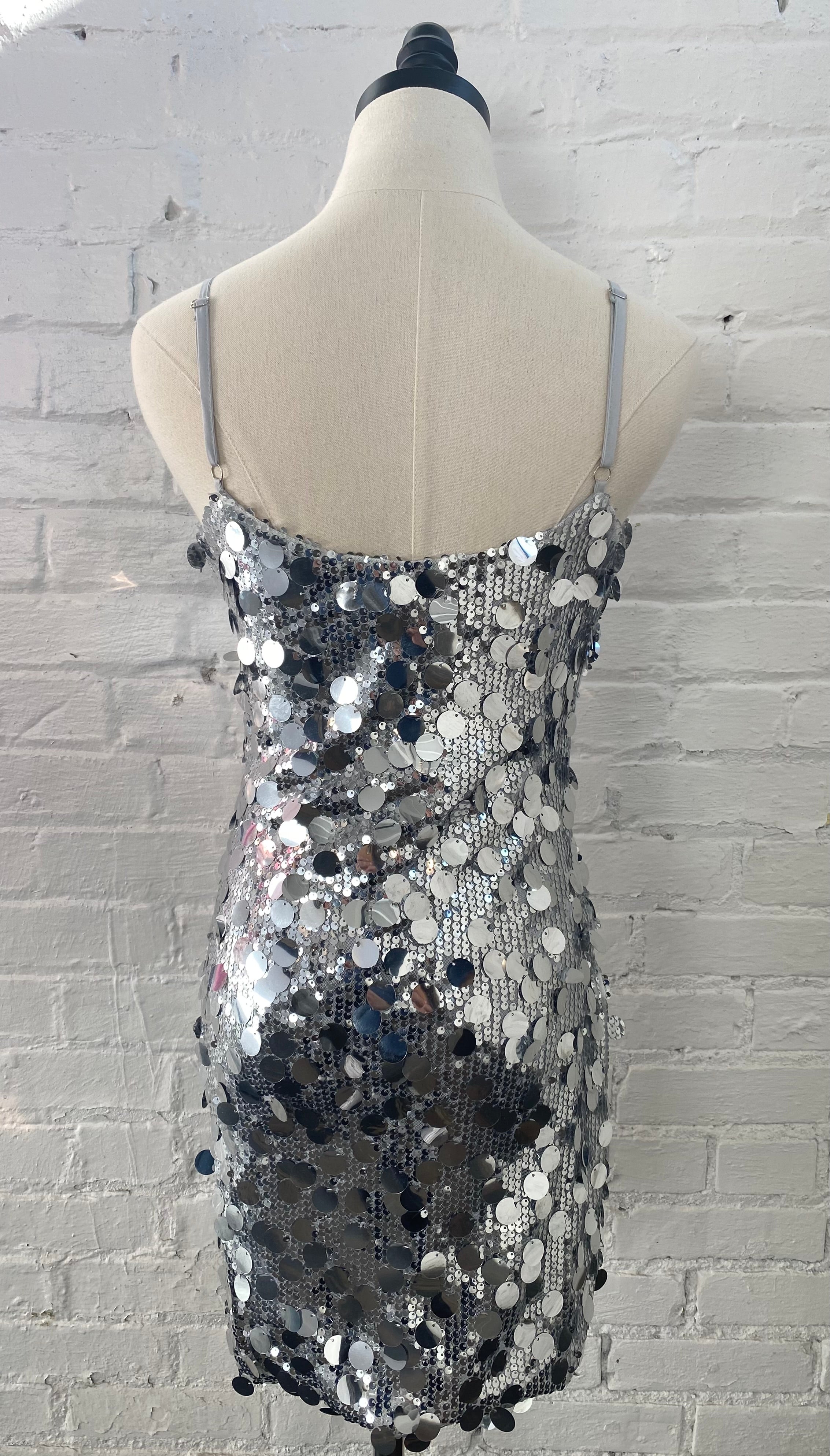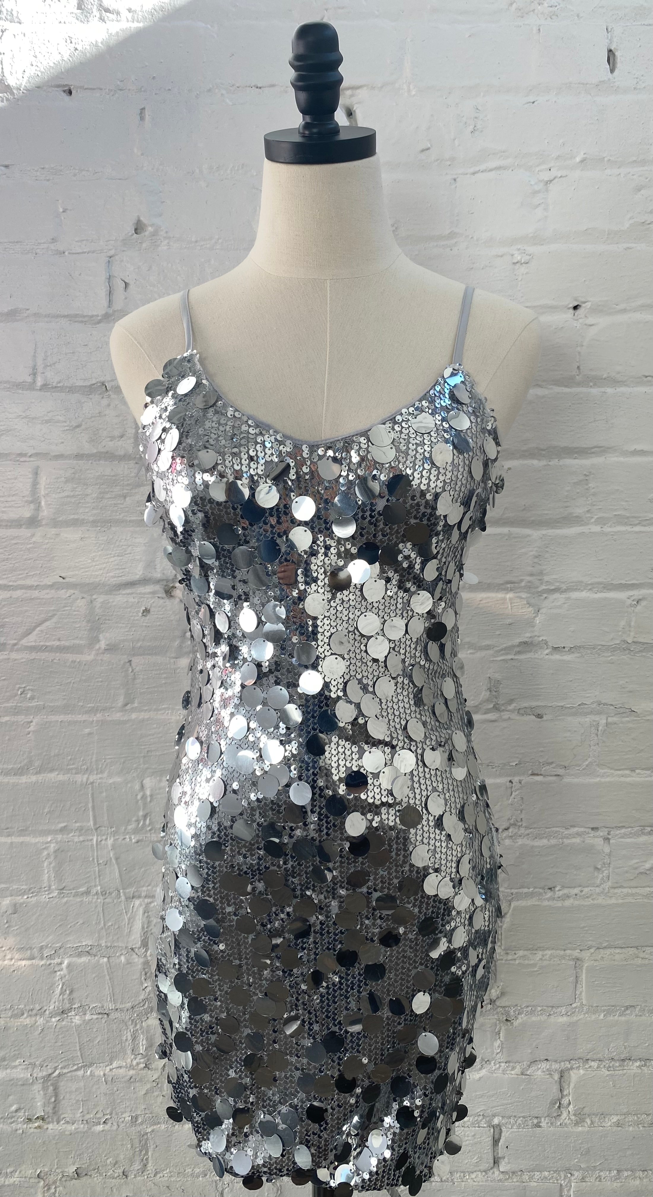 Turn heads and light up the dance floor in this stunning Silver Mirror Sequin Dress. Covered in shimmering sequins that catch every beat of the music, this show-stopping piece is pure disco magic. Perfect for parties, celebrations, or any night you want to feel absolutely fabulous. Make a bold statement and own the room with confidence and sparkle. Your moment to shine is here.