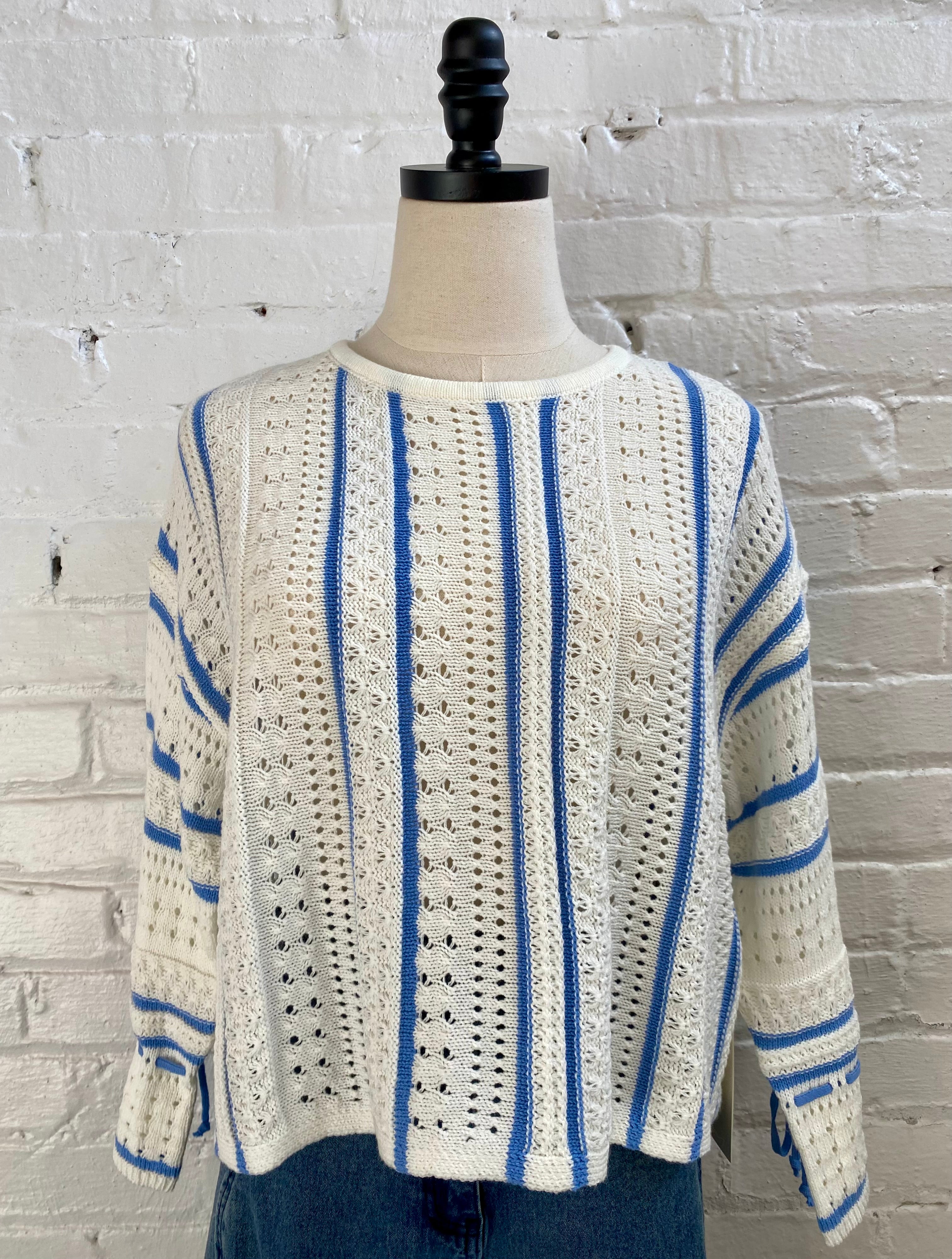 Striped Breeze Tie-Sleeve Sweater