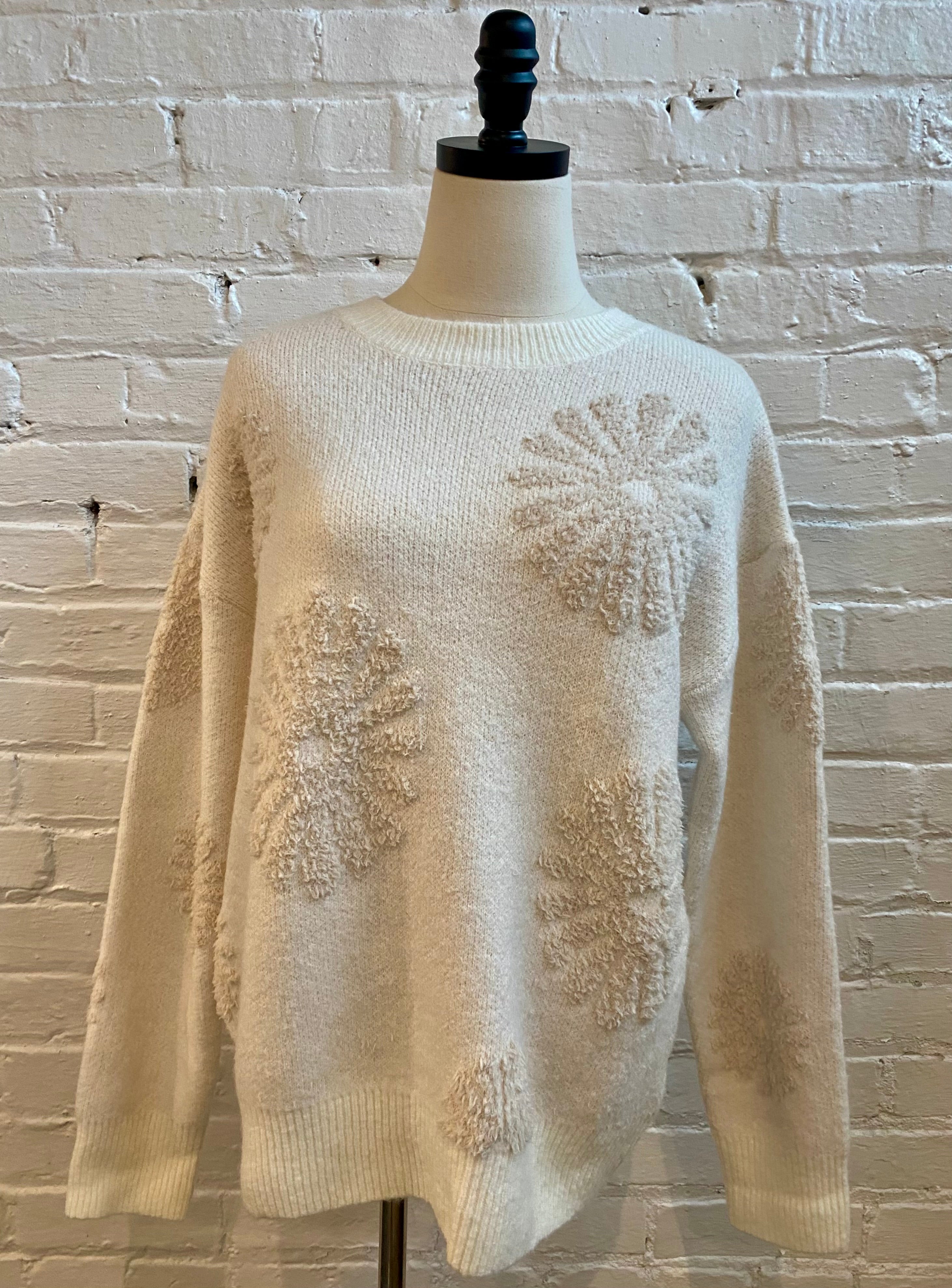 Tonal Floral Flocked Sweater