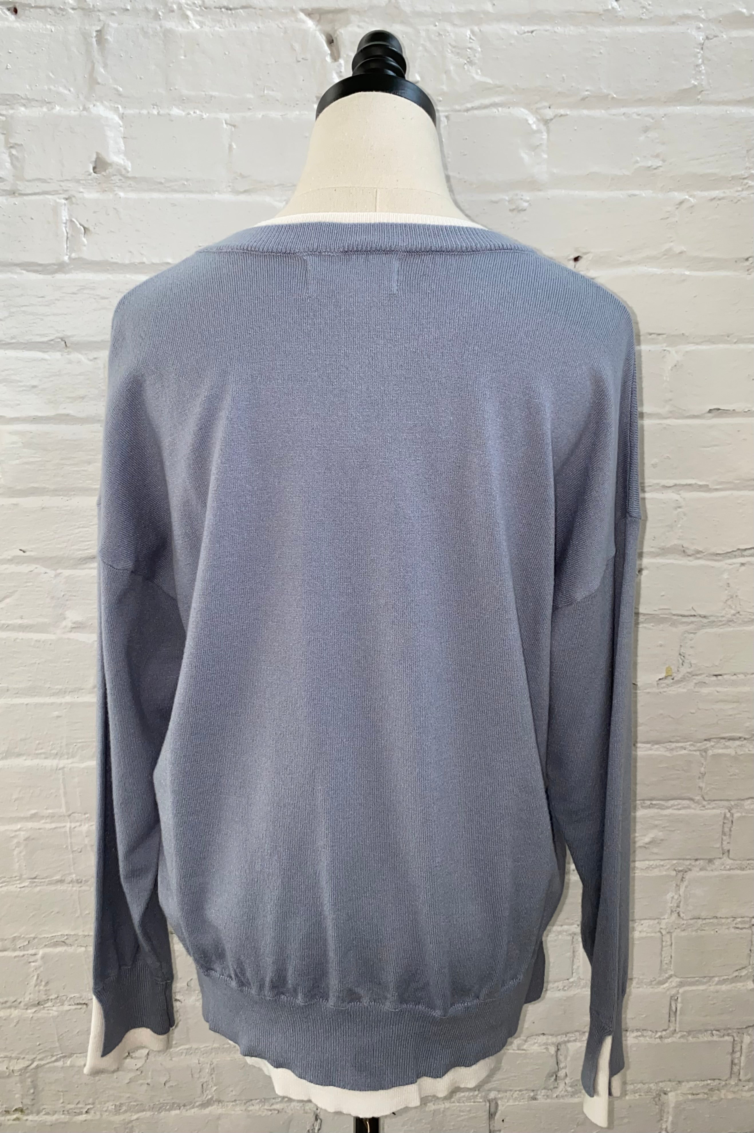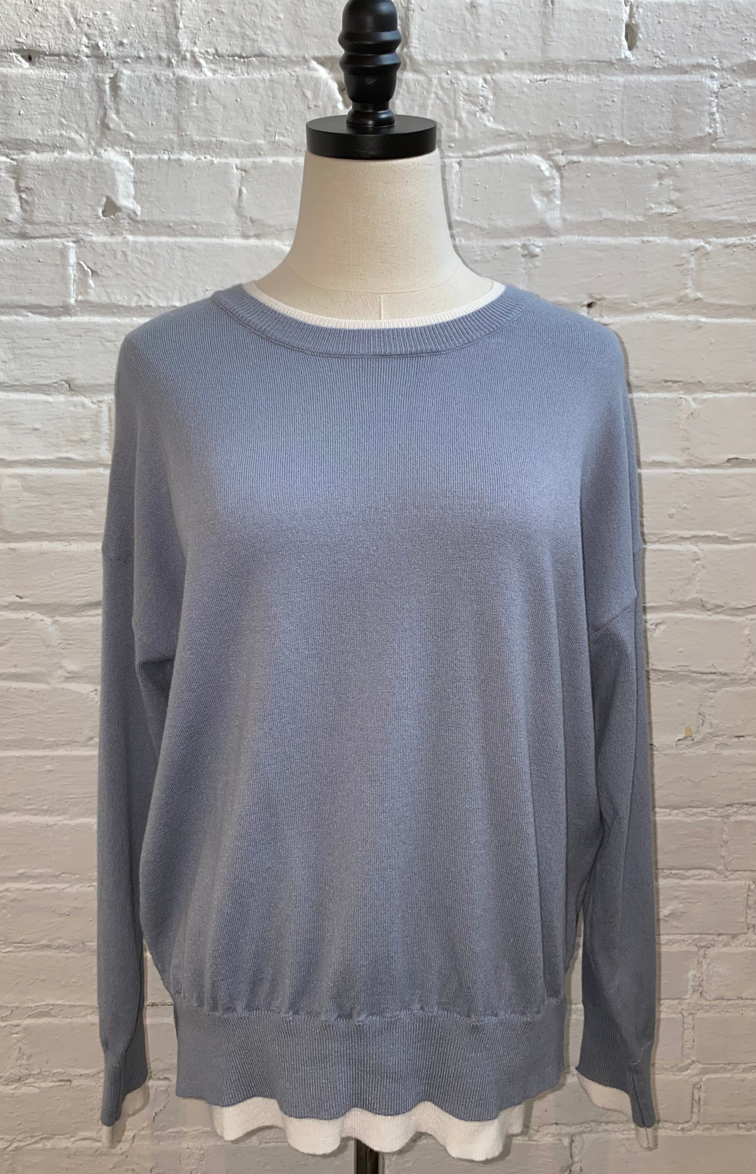Elevate your casual style with this Two Tone Viscose Sweater, blending lightweight comfort with classic chic. Its playful layered design adds easy sophistication to any outfit, making it your go-to for effortless, stylish days. Perfect for those who love a touch of flair without the fuss.