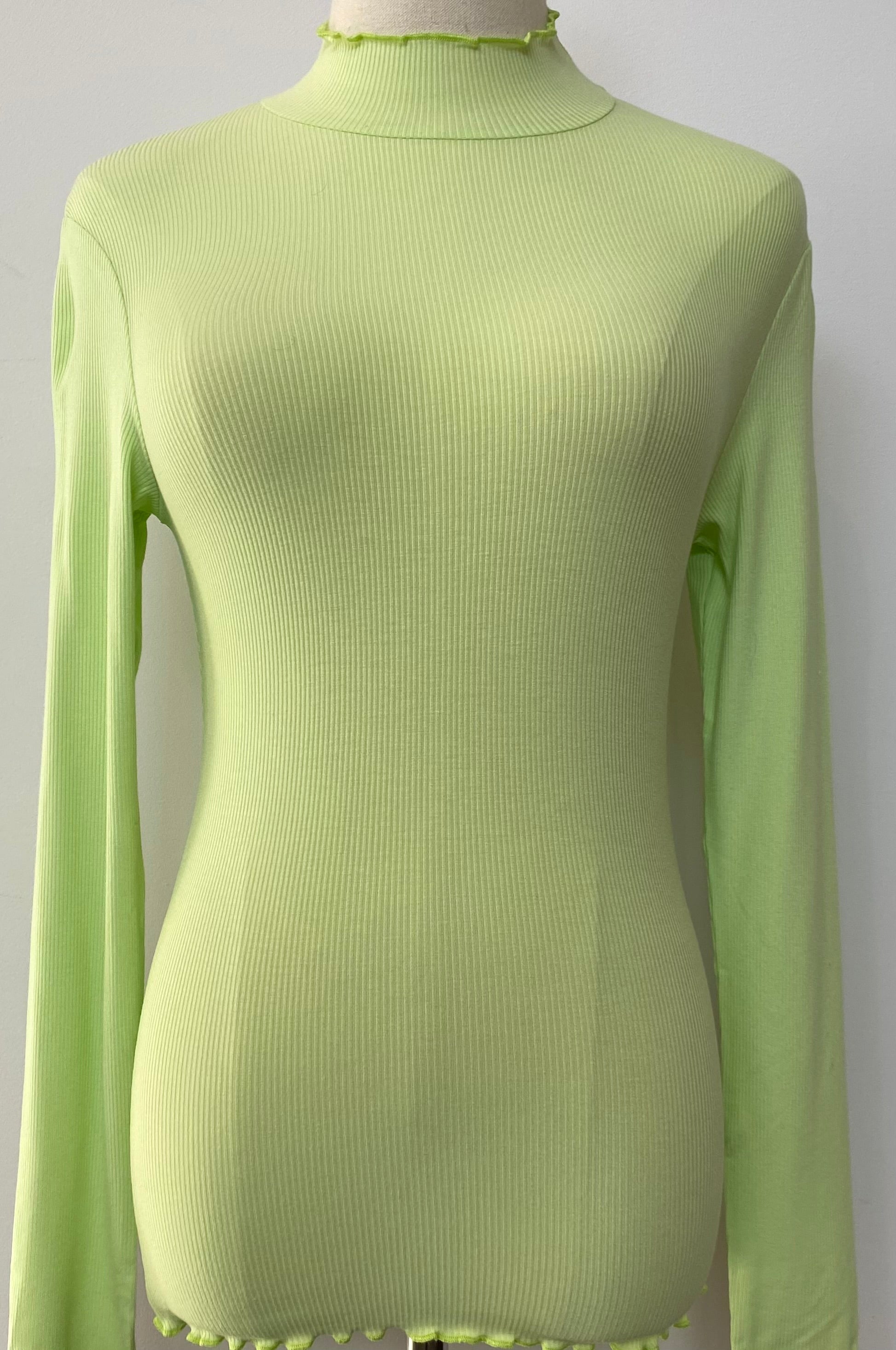 Get on trend with the Lettuce Edge Top in the season's must-have color, celery green! This long sleeve top features a unique lettuce edge design, perfect for adding a playful touch to any outfit. Stay stylish and fun with this quirky top.